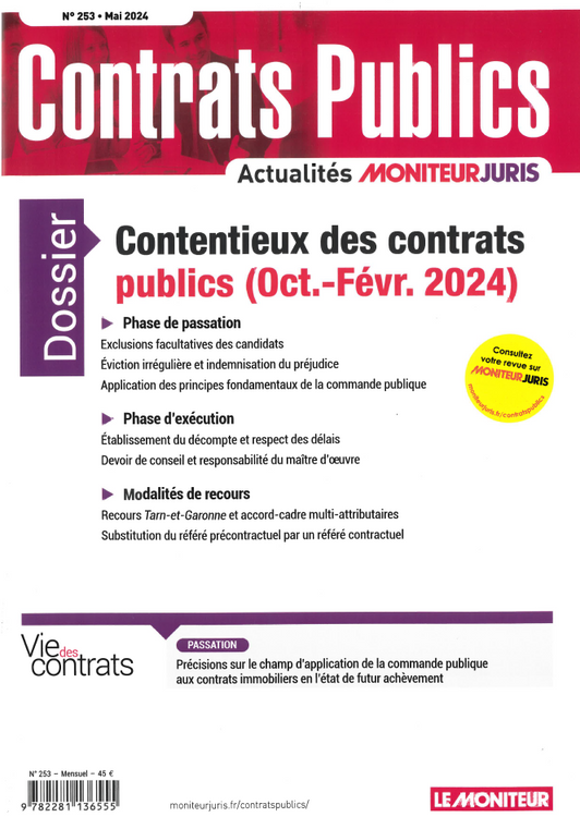 Au sommaire de ce numéro, un dossier dédié aux contentieux des contrats publics (Oct.-Févr. 2024) :